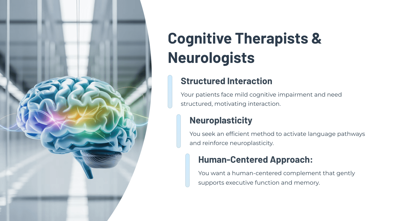 By working within the brain’s optimal cognitive window, we reduce fatigue, improve adherence, and amplify neuroplastic gains — especially in early-stage cognitive decline.